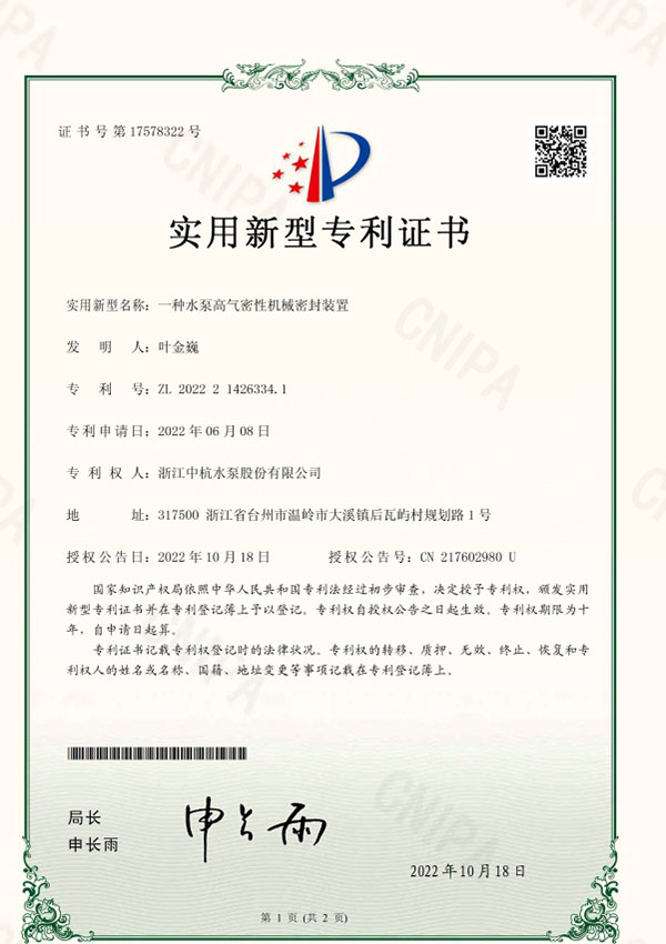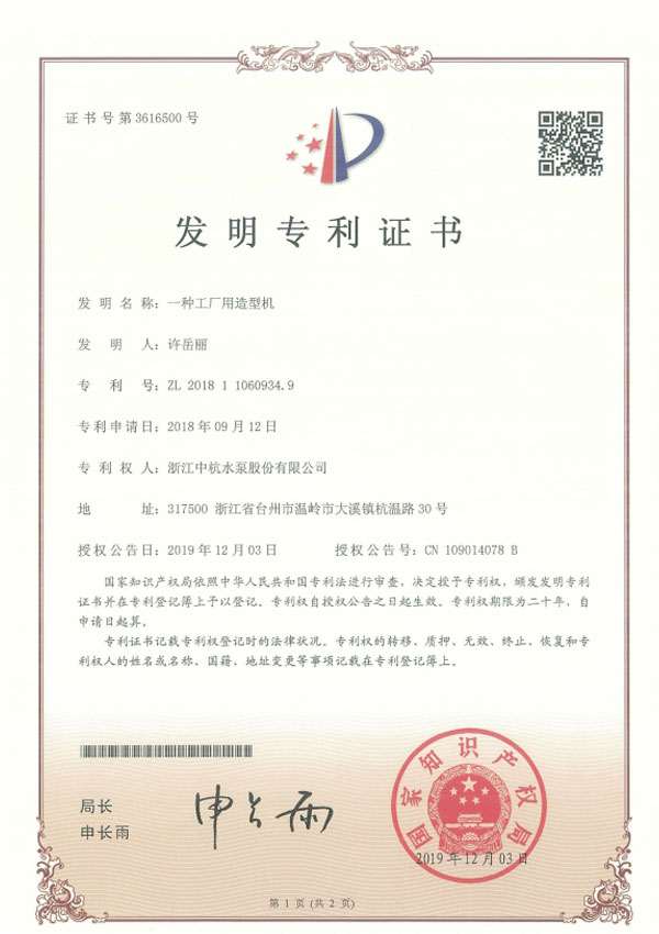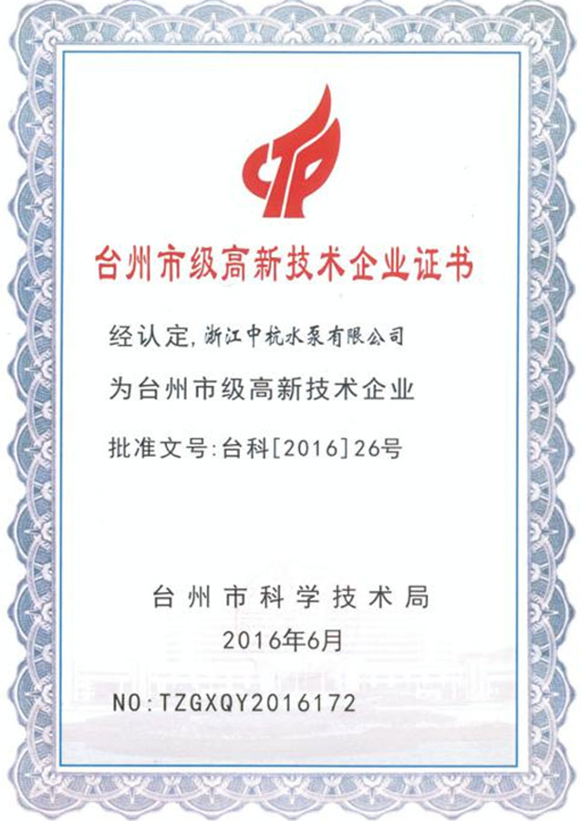 我们坚信"科学技术是第一生产力",不断提高产品的技术水平和科技含量,先后获得数十项发明专利和实用新型专利,2016年获批台州市级高新技术企业,2017年同时获批省级和国家级高新技术企业,2018年获批"台州市级企业技术中心",2019年获评台州市"瞪羚企业"和"温岭市百强企业",并当选为"温岭市泵与电机标准化技术委员会"首届委员单位,发展后劲不断增强。